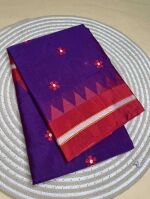 • Bold Borders – Often in contrasting colors like red, maroon, or purple with traditional temple or geometric designs.