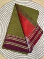 ILKAL GREEN BROWN SAREES -GAADI DHADI PURE COTTON