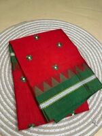 • Bold Borders – Often in contrasting colors like red, maroon, or purple with traditional temple or geometric designs.