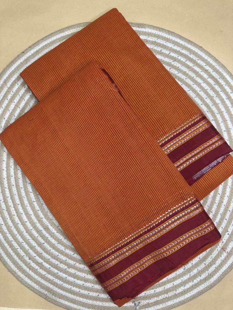 ILKAL BROWN AND MAROON BORDER SAREE-VISCOSE BY COTTON HANDLOOM SAREE\\