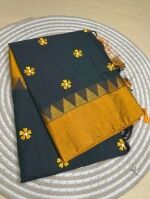 • Bold Borders – Often in contrasting colors like red, maroon, or purple with traditional temple or geometric designs.